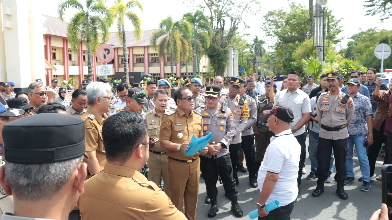 Sebelum pelaksanaan aksi, personel gabungan terlebih dahulu melaksanakan apel kesiapan pengamanan dilanjutkan dengan Tactical Floor Game (TFG) sebagai bentuk kesiapan teknis dalam menghadapi berbagai potensi situasi di lapangan.