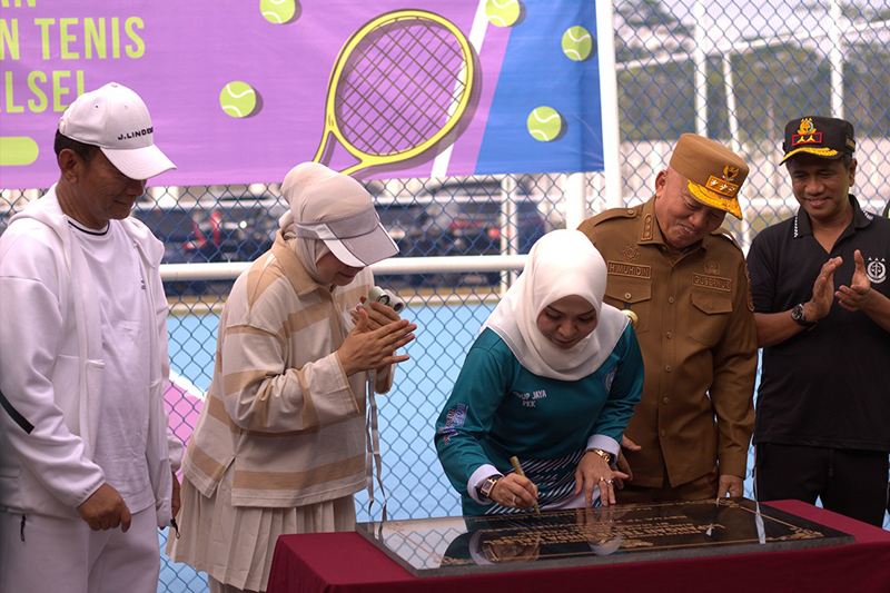 Peresmian Lapangan Tenis tersebut disaksikan Gubernur Kalsel, H Muhidin dan Kepala BINDA Provinsi Kalsel, Brigjen Pol Nurullah dan sejumlah pejabat lainnya.