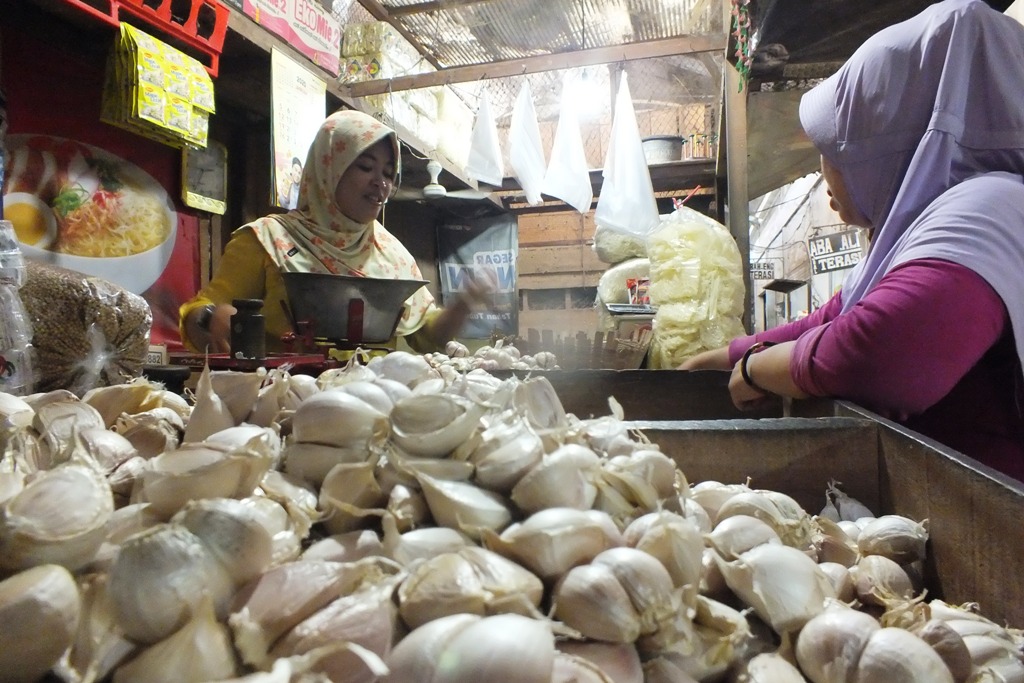 BAWANG PUTIH TURUN – Harga pangan sebagian besar mengalami penurunan secara rata-rata nasional, termasuk komoditas bawang putih bonggol turun menjadi Rp37.846 per kg.(foto:mb/ant)