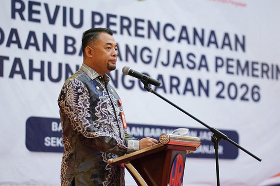 SEKDA Banjar H Yudi Andrea memberikan arahan saat membuka Reviu Perencanaan Barang/Jasa Pemerintah Tahun Anggaran 2026.(foto;mb/ist)