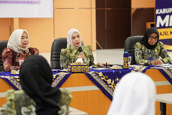 BUNDA PAUD Kabupaten Banjar Hj Nurgita Tiyas (tengah) memberikan arahan saat membuka Raker Pokja PAUD Kabupaten Banjar.(foto:mb/ist)