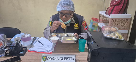 Dalam pelaksanaannya, personel Si Dokkes Polres Tabalong melakukan pemeriksaan terhadap makanan MBG dengan mengecek bau, rasa, warna, serta kondisi fisik makanan.