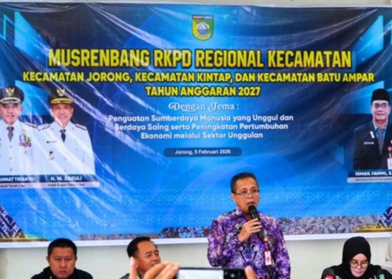 PELAIHARI – Pemerintah Kabupaten Tanah Laut melaksanakan Musyawarah Perencanaan Pembangunan (Musrenbang) tingkat kecamatan untuk wilayah Kecamatan Jorong, Kintap dan Batu Ampar, di Aula Kecamatan Jorong, Kamis (05/02).