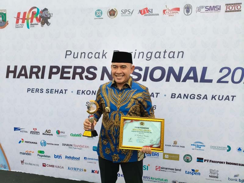 SERANG – Bupati Tanah Laut (Tala), H Rahmat Trianto menerima penghargaan SIWO Award dalam rangkaian Hari Pers Nasional (HPN) tahun 2026 yang berlangsung di Kantor Gubernur Banten, Senin (9/2).