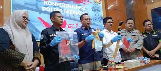 TANJUNG – Polres Tabalong menggelar konferensi pers terkait hasil pemeriksaan senjata dan autopsi jenazah korban penganiayaan di SDN Sulingan berinisial RS (23), beberapa waktu lalu.