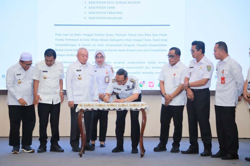 Rapat yang dihadiri langsung oleh Kepala Daerah dari 6 (enam) Kabupaten Banua Anam ini juga dilakukan penandatanganan Berita Acara Kesepakatan Bersama Program Terpadu Penanganan Pengendalian Banjir Kawasan Banua Anam, yang salah satu poinnya adalah komitmen enam kabupaten ini untuk melaksanakan program pengendalian banjir secara terkoordinasi dan terpadu lintas wilayah administrasi guna meminimalisir dampak terhadap sosial-ekonomi masyarakat di kawasan Banua Anam.