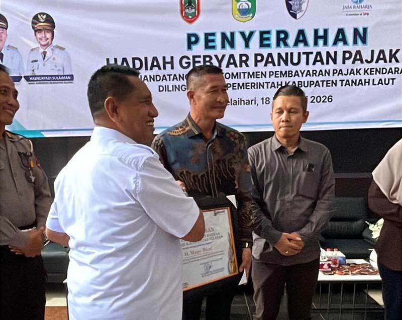 PELAIHARI – Pemerintah Kabupaten (Pemkab) Tanah Laut (Tala) bersama Unit Pelayanan Pendapatan Daerah (UPPD) Samsat Pelaihari menggelar penyerahan Simbolis Hadiah Utama Gebyar Panutan Pajak Kendaraan Bermotor (PKB) Tahun 2025 di Kantor Samsat Pelaihari, Rabu (18/02).