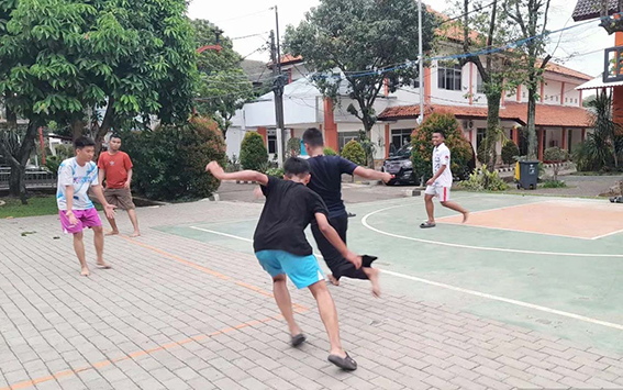 Suara tendangan kaki anak-anak yang bermain bola terdengar dari jauh saat matahari sudah mulai rebah di ufuk barat. Sore itu sekitar pukul 16.30 WIB, kedua anak terlihat tengah menurunkan bendera yang kini menjadi aktivitas wajib mereka, sebelum kembali istirahat ke asrama.