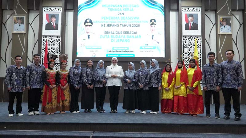 BANJARMASIN – Pemerintah Kota Banjarmasin melaksanakan Pelepasan Delegasi Tenaga Kerja dan Penerima Beasiswa Kaikoukai Healthcare Corporation ke Jepang Tahun 2026 angkatan ke-4, berlangsung di Aula Kayuh Baimbai, Balai Kota Banjarmasin, Rabu (18/02).