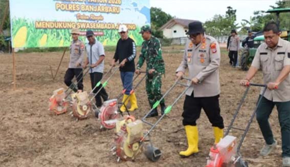 BANJARBARU – Polres Banjarbaru, jajaran Polda Kalimantan Selatan, melakukan langkah konkret mendukung program Ketahanan Pangan Nasional (KPN) dengan memanfaatkan lahan tidur menjadi lahan produktif melalui penanaman jagung di Kelurahan Cempaka.