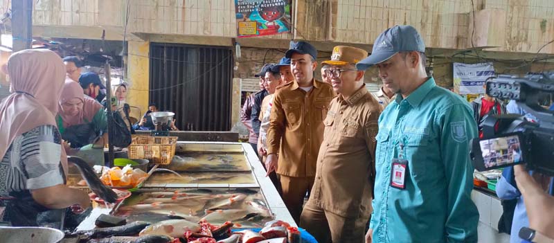 Bupati Tabalong H Muhammad Noor Rifani Bersama Wakil Bupati Tabalong Habib Muhammad Taufani Alkaf Saat Meninjau Pasar Tanjung. (foto:mb/yan)