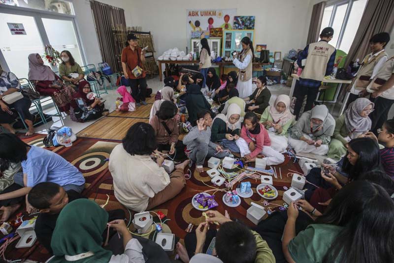 KERAJINAN TANGAN – Anak Berkebutuhan Khusus (ABK) mengikuti kelas kerajinan tangan menghias kotak tisu dengan kawat bulu di ABK UMKM, Tangerang Selatan, Banten, Minggu (29/3). Kegiatan ini menjadi bagian dari upaya mendorong kreativitas dan kemandirian ABK di tengah penerapan Peraturan Pemerintah Nomor 17 Tahun 2025 tentang Tata Kelola Penyelenggaraan Sistem Elektronik dalam Pelindungan Anak (PP TUNAS), yang menekankan pentingnya ekosistem digital yang aman serta peran aktif orang tua dalam mendampingi tumbuh kembang anak.