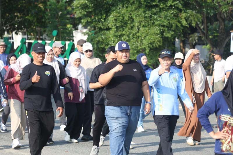 Sekretaris Daerah Kabupaten Tanah Bumbu, Yulian Herawati, memimpin langsung kegiatan Jalan Sehat ASN yang digelar di kawasan perkantoran Pemkab Tanah Bumbu.