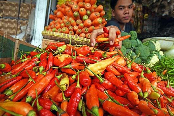 HARGA CABAI RAWIT – Komoditas cabai rawit merah masih mahal yang sekarang mencapai Rp83.150 per kilogram. Begitu juga dengan jenis cabai merah lainnya yang masih tinggi.(foto;mb/.ant)