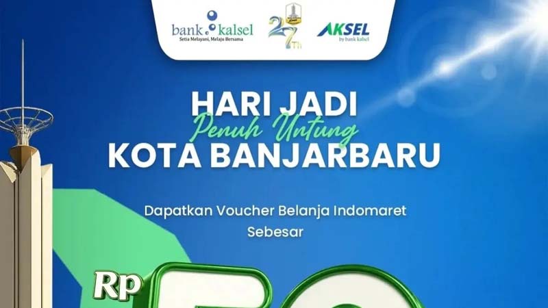BANJARMASIN – Bank Kalsel menghadirkan promo spesial dalam rangka memperingati Hari Jadi ke-27 Kota Banjarbaru dengan memberikan voucher belanja senilai Rp50 ribu kepada masyarakat.