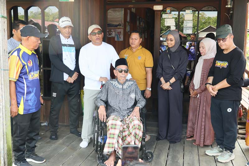 AMUNTAI – Bupati HSU H. Sahrujani bersama Wakil Bupati Hero Setiawan menyerahkan secara langsung bantuan kursi roda kepada Bapak Misra, warga Desa Tatah Laban Rt 01, Kecamatan Sungai Pandan Kabupaten Hulu Sungai Utara (HSU).