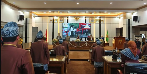 SUASANA rapat Paripurna DPRD Kota Banjarbaru dengan agenda Hari Jadi ke-27 Kota Banjarbaru tahun 2026 yang berlangsung tertib dan penuh khidmat di gedung DPRD Banjarbaru, Ahad (19/4).(foto:mb/ant)