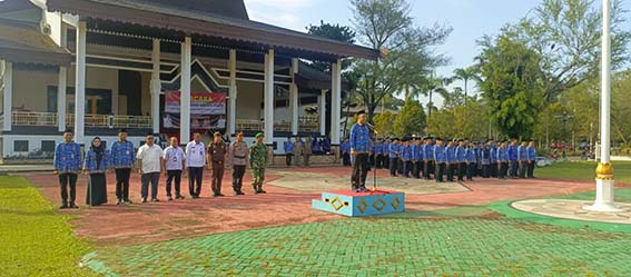 TANJUNG – Wakil Bupati Tabalong Habib Muhammad Taufani Alkaf memimpin apel peringatan Hari Kesadaran Nasional, sekaligus dalam rangka Hari Ulang Tahun (HUT) ke-107 Damkar, HUT ke-76 Satpol PP, dan HUT ke64 Satlinmas di halaman Pendopo Bersinar Pembataan, Senin (20/4).