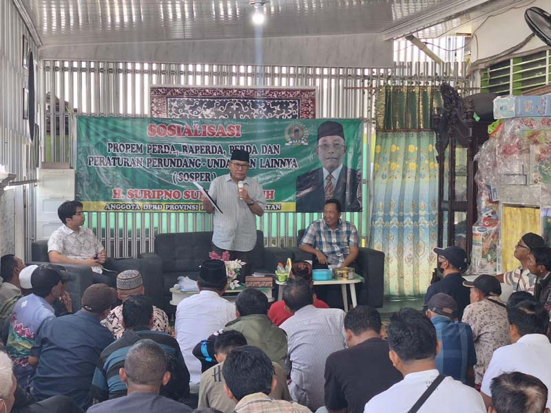 BANJARMASIN-Ketua Fraksi PKB DPRD Provinsi Kalimantan Selatan (Kalsel) H Suripno Sumas SH MH menggelar Sosialisasi Peraturan Daerah (Perda) Provinsi Kalsel nomor 11 tahun 2019 tentang penyelenggaraan perumahan dan kawasan pemukiman.