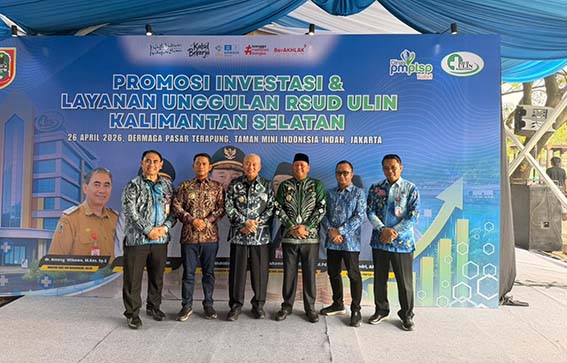 BANJARMASIN – Gubernur Kalimantan Selatan, H. Muhidin, menghadiri sekaligus memberikan sambutan pada Forum Investasi dan Promosi Layanan Unggulan RSUD Ulin Kalimantan Selatan Tahun 2026 yang digelar di Taman Mini Indonesia Indah (TMII), Jakarta, Minggu (26/4).