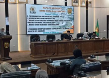 WALIKOTA Banjarbaru Erna Lisa Halaby saat menyampaikan tiga rancangan peraturan daerah pada rapat paripurna di gedung DPRD Banjarbaru, Selasa...