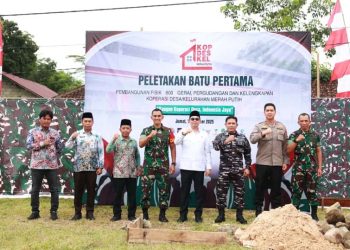 KOPERASI-Bupati Andi Rudi Latif bersama para pejabat saat usai peletakan batu pertama pembangunan fasilitas Koperasi Desa/Kelurahan Merah Putih...